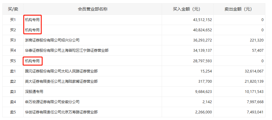 当天机构净买入前三的股票分别是阳光电源、上实发展、华英农业,净买入金额分别为1.13亿元、4221万元、2141万元。