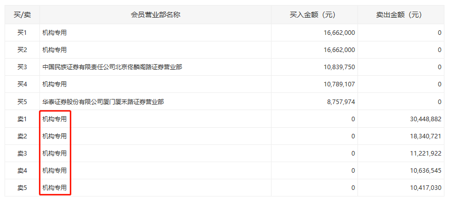 在卖出排行榜上,机构卖出最多的深信服有5家机构进行了卖出,合计净卖出金额5361万元。