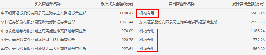 在卖出排行榜上,机构卖出最多的美克家居有4家机构进行了卖出,合计净卖出金额9493万元。