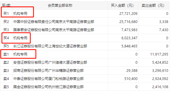当天机构净买入前三的股票分别是特发信息、建设机械、粤桂股份,净买入金额分别是1.93亿元、1.66亿元、1.16亿元。