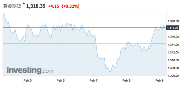 8日,黄金期货价格刷新两个交易日高点报1318.35美元/盎司,涨幅扩大至0.32%。春节假期期间,国际黄金价格一度下跌至1306.85美元,周五因市场担忧全球贸易风险,避险情绪上升推高了金价走势。
