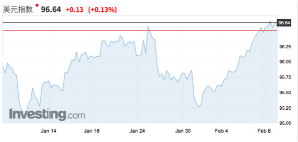 2月1日公布的美国1月份非农就业人数增加了30.4万人,大幅高于预期的16.5万人;2月7日,最新公布的美国2月2日当周首次申请失业救济人数也有所下降。几项关键数据表明,美国的就业市场依然十分强劲,在一定程度上对美元形成了支撑。