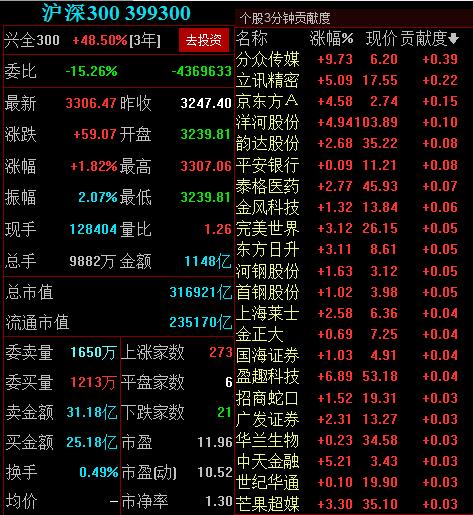 周一午后,沪深300指数上涨突破3300点,截至收盘,涨1.82%报3306.47点,刷新去年10月以来新高。