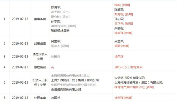 通过天眼查查询发现,中民外滩房地产开发有限公司于2月13日出现股东变更,其中,中国民生投资股份有限公司、上海佳渡置业有限公司(中民投孙公司)退出,绿地地产集团有限公司新增股东;法人代表亦变更为绿地集团高管徐荣璞。 这也证实了绿地接盘中民投董家渡地块的传闻。