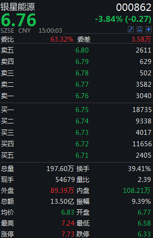 2月19日,此前连续9日涨停的银星能源收跌近4%,报6.76元,换手率39.41%,成交额13.5亿元。