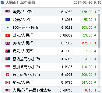 2月26日,人民币兑美元中间价上调179点,报6.6952,上一交易日中间价报6.7131。上一交易日官方收盘价6.6941,上一交易日夜盘收报6.6877。同时,今日无逆回购到期。中国央行公开市场今日将进行1200亿元人民币7天期逆回购操作。