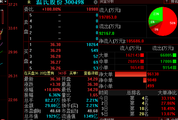 3月4日,温氏股份巨量涨停,截至收盘,报36.30元,成交额29亿元。