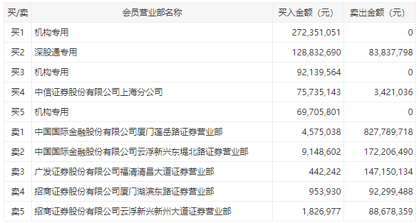 盘后数据显示,三机构买入4.3亿元,深股通买入1.29亿元并卖出8383万元,中信证券上海分公司买入7573万元,卖出前五均为券商营业部。