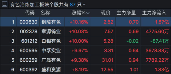 有色金属板块今日早盘异动走强,铜陵有色、白银有色、章源钨业先后涨停,广晟有色、盛和资源等纷纷大幅跟涨。