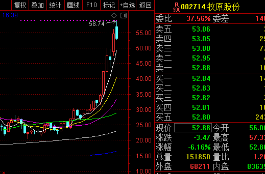 此外,当前牧原股份股价也报在56.35元/股,较2018年9月最低21.18元/股,涨幅超过175%。