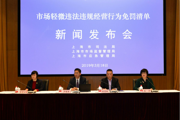 3月18日,上海市司法局、市市场监督管理局、市应急管理局召开新闻发布会,介绍近期三部门联合出台的《免罚清单》的有关情况。