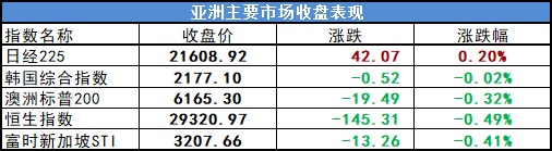 【亚太主要市场收盘表现】
