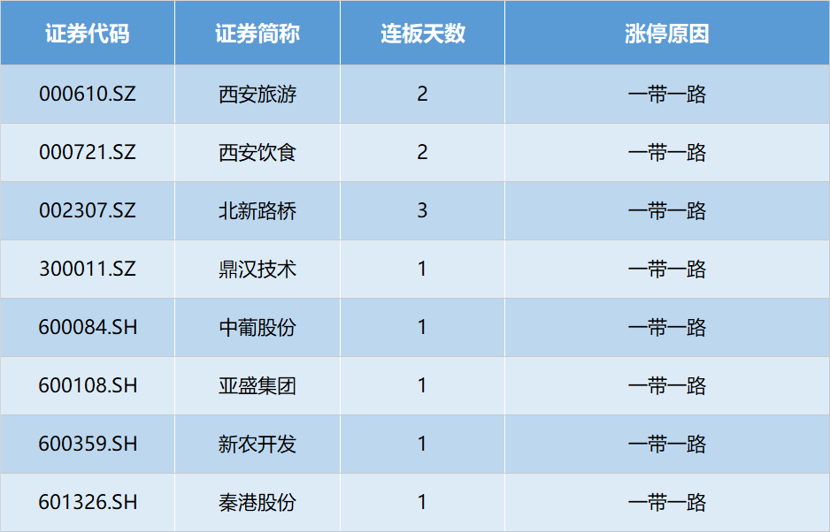 一带一路概念持续走强,西安旅游(000610.SZ)、西安饮食(000721.SZ)、北新路桥(002307.SZ)、鼎汉技术(300011.SZ)、中葡股份(600084.SH)、亚盛集团(600108.SH)、新农开发(600359.SH)、秦港股份(601326.SH)封涨停。消息面上,第二届“一带一路”国际合作高峰论坛将于2019年4月下旬召开,作为2019年中国最重要的外事活动之一,这将为“一带一路”主题提供重大催化剂。