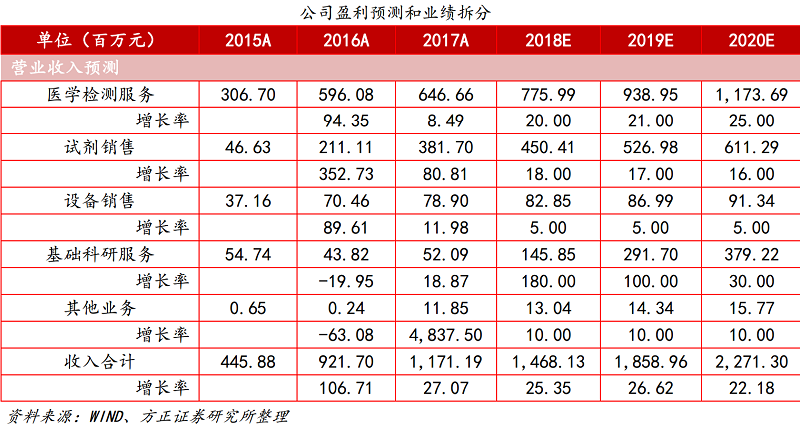 2018年NIPT市场总例数约400万例,方正证券判断未来仍有两倍以上的成长空间:每年新生儿以1500万名计算,假设75%的孕妇当年分娩,则每年新增孕妇数量约2000万名;假设NIPT达到60%的市场渗透率,则每年检测数量约1200万例,相比2018年的数量仍有两倍的提升空间。方正证券认为未来三年公司主营业务收入有望保持20%-30%稳定增长;考虑到公司规模效应日渐显著,其销售费用率和管理费用率(剔除研发费用)仍有下调空间,预计利润增速将略快于收入增速。