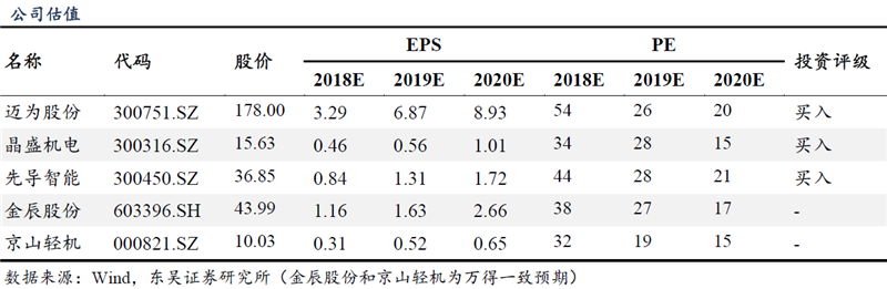东吴证券推荐已优先布局叠瓦组件的设备商。迈为股份(300751.SZ)为光伏电池片丝网印刷设备龙头,生产叠瓦丝网印刷设备是对公司技术优势的充分沿袭;晶盛机电(300316.SZ)的新产品光伏叠瓦自动化生产线已顺利实现销售,同时晶盛也是中环股份的长期战略合作方,而中环是东方环晟的主要股东之一,为晶盛未来有望进入东方环晟核心供应商体系,受益其瓦业务发展;先导智能(300450.SZ)以串焊机龙头进军叠瓦设备领域,有天然的技术延伸性。建议关注金辰股份(603396.SH)、京山轻机(000821.SZ)。