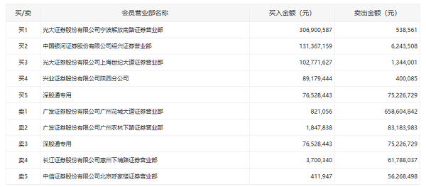 盘后数据显示,该股以券商营业部资金博弈为主。具体来看,深港通资金买入7653万元,卖出7523万元;买一席位光大证券宁波解放南路营业部买入3.07亿元,卖一席位广发证券广州花城大道营业部卖出6.59亿元。