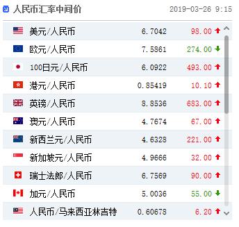 3月26日, 人民币兑美元中间价上调56点,报6.7042,上一交易日中间价报6.7098;上一交易日官方收盘价6.7112,上一交易日夜盘收报6.7090。同时,中国央行今日不开展逆回购操作。