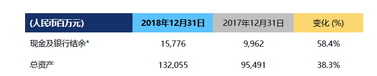 根据公告披露,宝龙地产现金和总资产额都大幅增加:2018年全年,现金及现金等价物,包括受限制现金合共约为157.76亿元,同比增加58.4%;总资产总额为1320.55亿,同比增加38.3%。