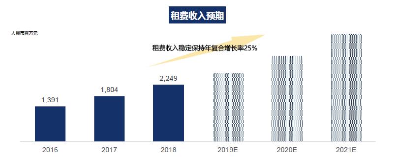 宝龙在2019年将新开业7座购物中心、2020年计划新开业8座、2021年计划新开业7座。随着未来三年大量购物中心的集中开业,及现有项目经营效率的提升,商业板块将保持稳定的增长,预期五年租费收入复合增长率稳定保持在25%。