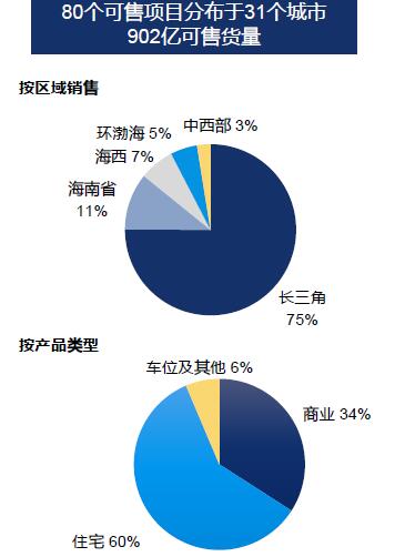 截至2018年底,宝龙地产的土地储备总计达到2120万平米,平均成交价为2486元/平方米,土地成交均价仅占2018年销售均价的17.1%,成本优势突出。预计2019年约有80个可售项目,合计902亿可售货量,其中长三角占比75%。
