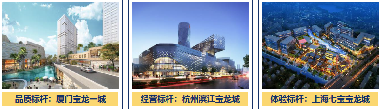 2018年,厦门宝龙一城开业,在宝龙地产众多商业综合体中,该项目定位为“品质标杆”,其作为厦门岛内首创的“六位一体”商业综合体,开业当天的客流量就达到30万以上,开业后月均客流量200万人次,已成为潮流青年网红打卡地标。此外,杭州滨江宝龙城定位为“经营标杆”,而上海七宝宝龙城则被定位为“体验标杆”。