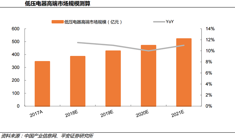 平安证券指出,相较于低压电器整体规模在未来三年保持约8%左右的增长,高端市场受到轨交、数据中心、5G基站等新基建项目增多、工业厂房技改需求旺盛和龙头房企份额提升等因素推动,预计在未来三年将保持10%左右的增速。