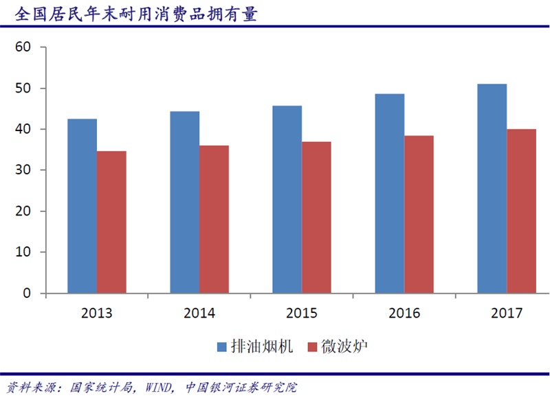 银河证券指出,中国家电业近年来一直保持高速增长趋势,其中2017年更是取得了近5年来最好的增长业绩,厨电市场表现非常突出,市场规模超过千亿。但随着行业整体规模的提升,市场逐渐饱和,行业高速增长趋势较难持续,未来行业发展将主要转向高质量发展,高端、智能、健康等特点在家电产品上的显现将更加突出。