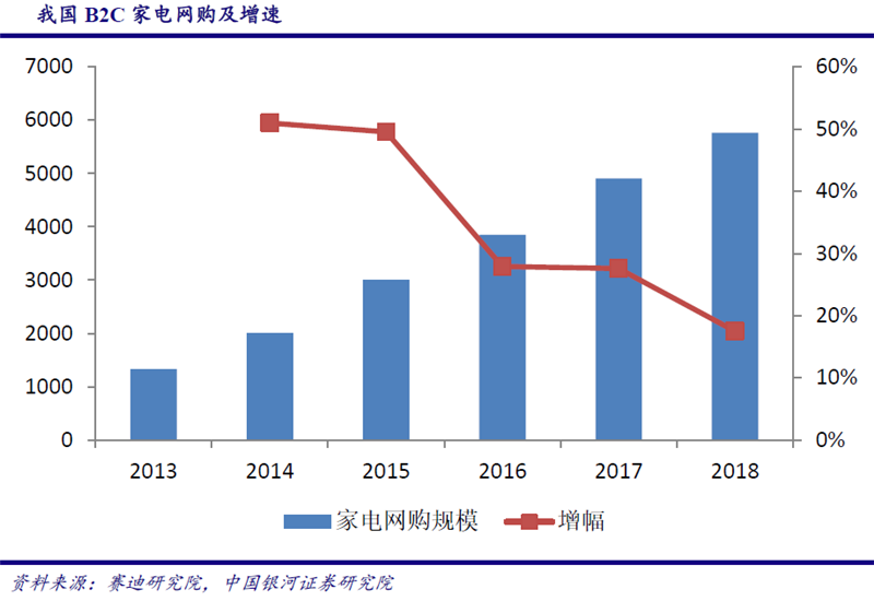 根据国家统计局数字,我国家用电器和音像器材类零售额增长率从2015年开始下滑,之后一直保持在9%左右。虽然2018年整体家用电器和影响器材类零售额增长率达到了8.89%,但2018年7月增长率只有0.6%,8-10月增长率也只有5%左右,下滑趋势明显。2019年1-2月,家用电器和影响器材类零售额为1211亿元,同比增长3.3%,相比2018年整体增速和12月单月增速均有大幅下滑。