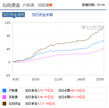 北向资金今日净流入117.44亿元,创四个月以来新高。其中,沪股通净买入70.77亿元,深股通净流入46.67亿元。