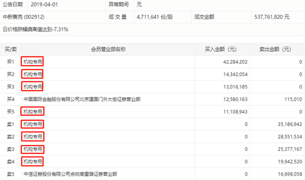 在卖出排行榜上,机构卖出最多的中新赛克有4家机构卖出,4家机构买入,净卖出金额2830.68万元。