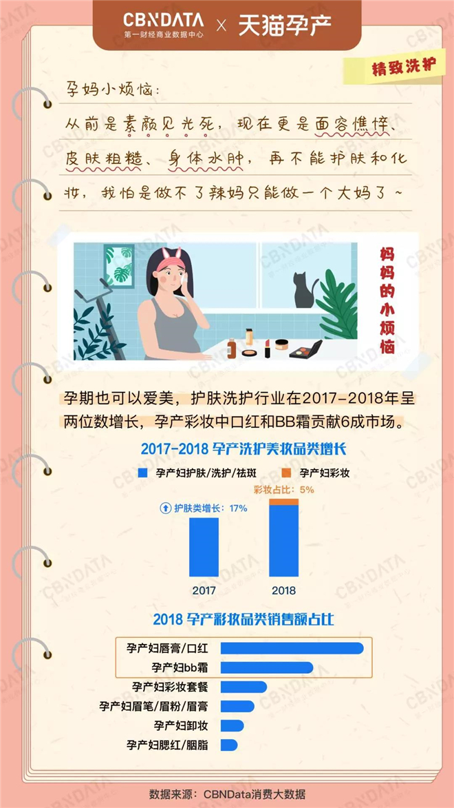 而在呈两位数持续增长的洗护品类中,面部及妊娠纹护理为市场主流,同时如乳房乳霜、月子牙刷、唇部精华等局部护理需求显现,可见孕期保养需求正向精细化发展。