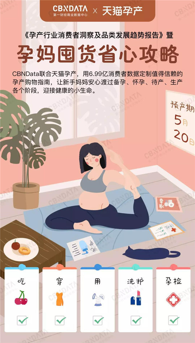 基于此,CBNData《报告》将就孕产行业中的“吃”“穿”“用”“洗护”“服务”五大趋势品类展开解析。