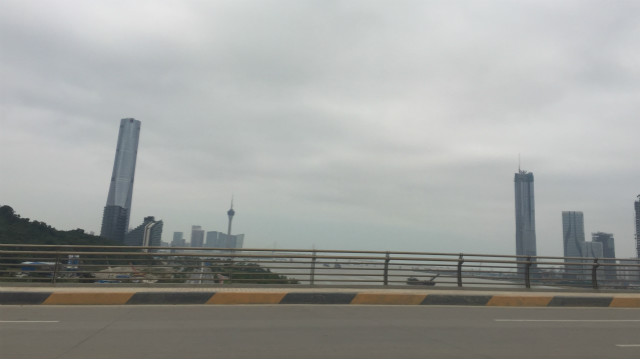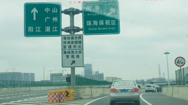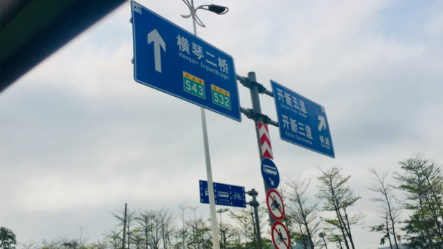 横琴岛公路两边都是正在建设的办公区、住宅和商业配套设施等,在这里还能遥望澳门。