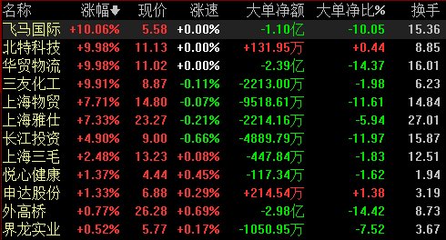 4月8日午后,上海自贸区概念股回暖,飞马国际、北特科技、华贸物流涨停,上海物贸、上海雅仕大涨超7%,长江投资、上海三毛、外高桥等集体翻红走强。
