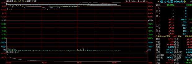 4月10日,格力电器午后再度涨停,报57.11元/股,成交额超171亿元,创历史新高。