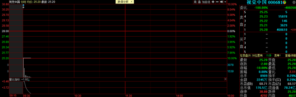 4月12日,视觉中国开盘跌停,报25.2元/股,卖一封单超40万手。