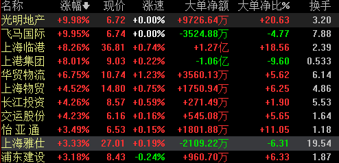 4月15日,上海自贸区概念盘中走高,截至发稿,飞马国际、光明地产涨停,上港集团、上海临港涨幅超8%,华贸物流涨超6%。