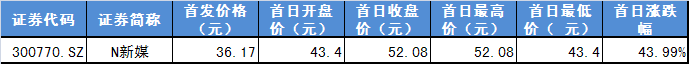 【新股上市首日表现】