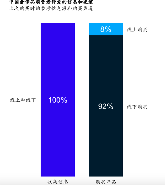 有意思的是,不论哪个年龄段的消费者,都会通过各种渠道获取奢侈品相关信息,包括浏览比较各大综合、垂直电商平台的奢侈品频道,但绝大部分购买行为最终还是发生在线下。