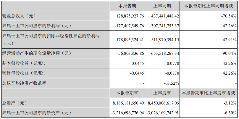 4月28日晚间,乐视网披露一季报,实现营收1.29亿元,同比下滑70.54%;亏损1.77亿元。