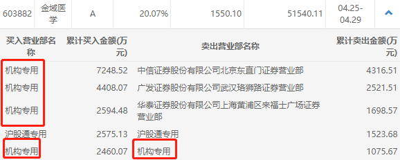 从详细数据看,机构今日净买入最多的金域医学有4家机构买入,1家机构卖出,合计净买入金额1.56亿元。