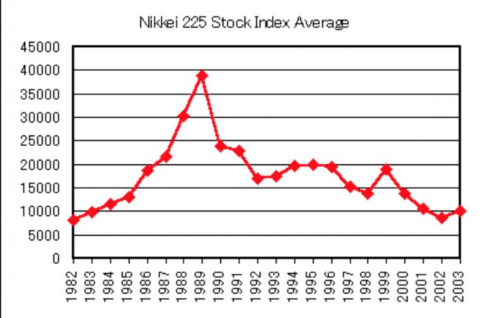 1990年(平成2年)股市开始崩盘,到了1990年年末,日经225指数从近3万9千点倒掉2万3千点,到1992年夏天,只剩1万6千点。1991年地产市场开始崩盘,到1993年泡沫经济完全破裂,报纸上充斥着公司倒闭的新闻。