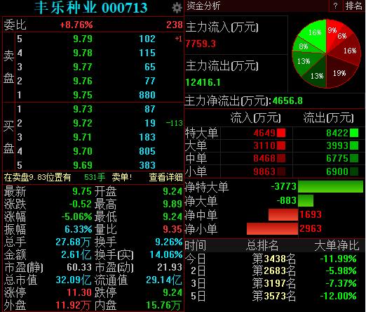 5月10日,丰乐种业开盘跌停,随后该股打开跌停板,截至发稿,丰乐种业跌5.06%,报9.75元。此前该股连续四日涨停。
