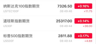 今日亚太早盘,美股三大股指期货止跌微涨,截至早上9点,纳指期货、道指期货、标普500指数期货分别上周0.16%、0.14%和0.17%。