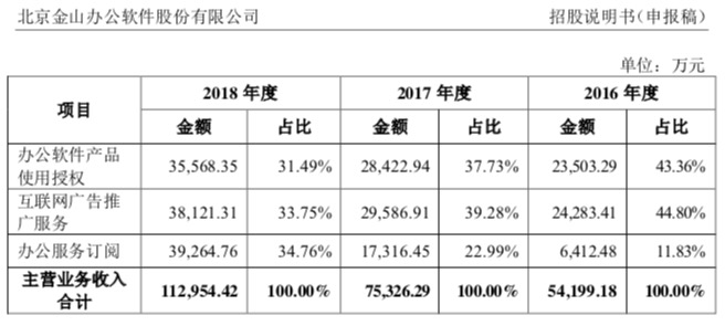 金山办公招股书称,公司产品主要包括WPS Office办公软件和金山词霸等;服务主要包括基于公司产品及相关文档的增值服务以及互联网广告推广服务,为客户提供一站式、多平台应用解决方案。