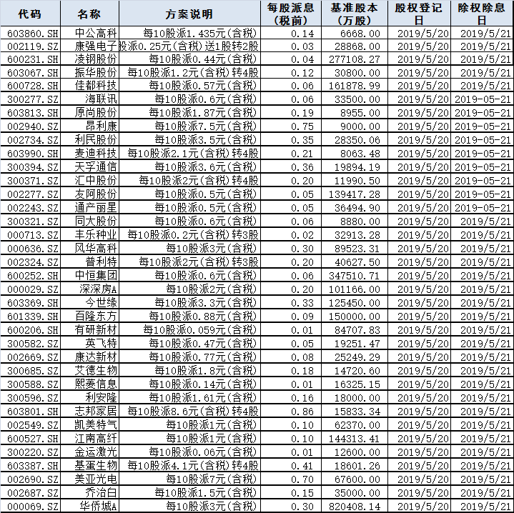 分红除权除息:
