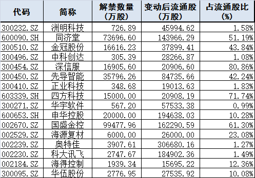 限售股解禁: