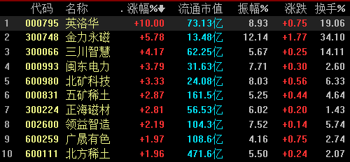 国融证券认为,稀土板块已经沉寂很久了,目前有消息面刺激,和风险偏好,作为一个相对来说比较老的板块,有一定稀缺性。龙头个股可以持续关注。