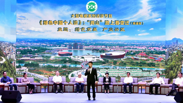 28日,大型电视访谈节目绿色中国十人谈:“两山”路上看变迁(南康篇)现场。摄影/章轲