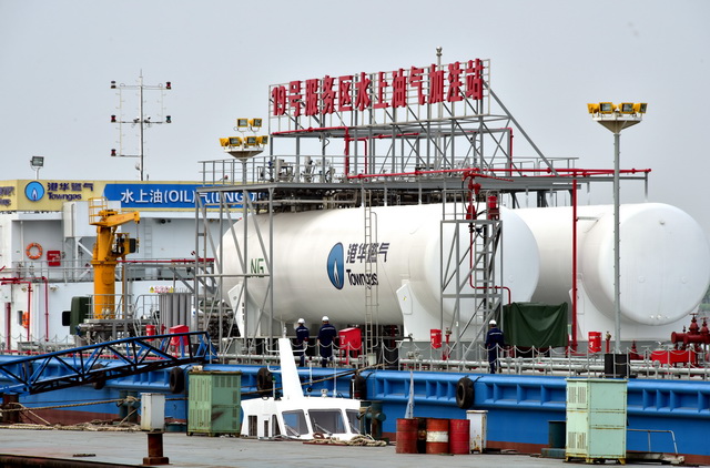 设在沿海港口的水上油气加注站。摄影/章轲